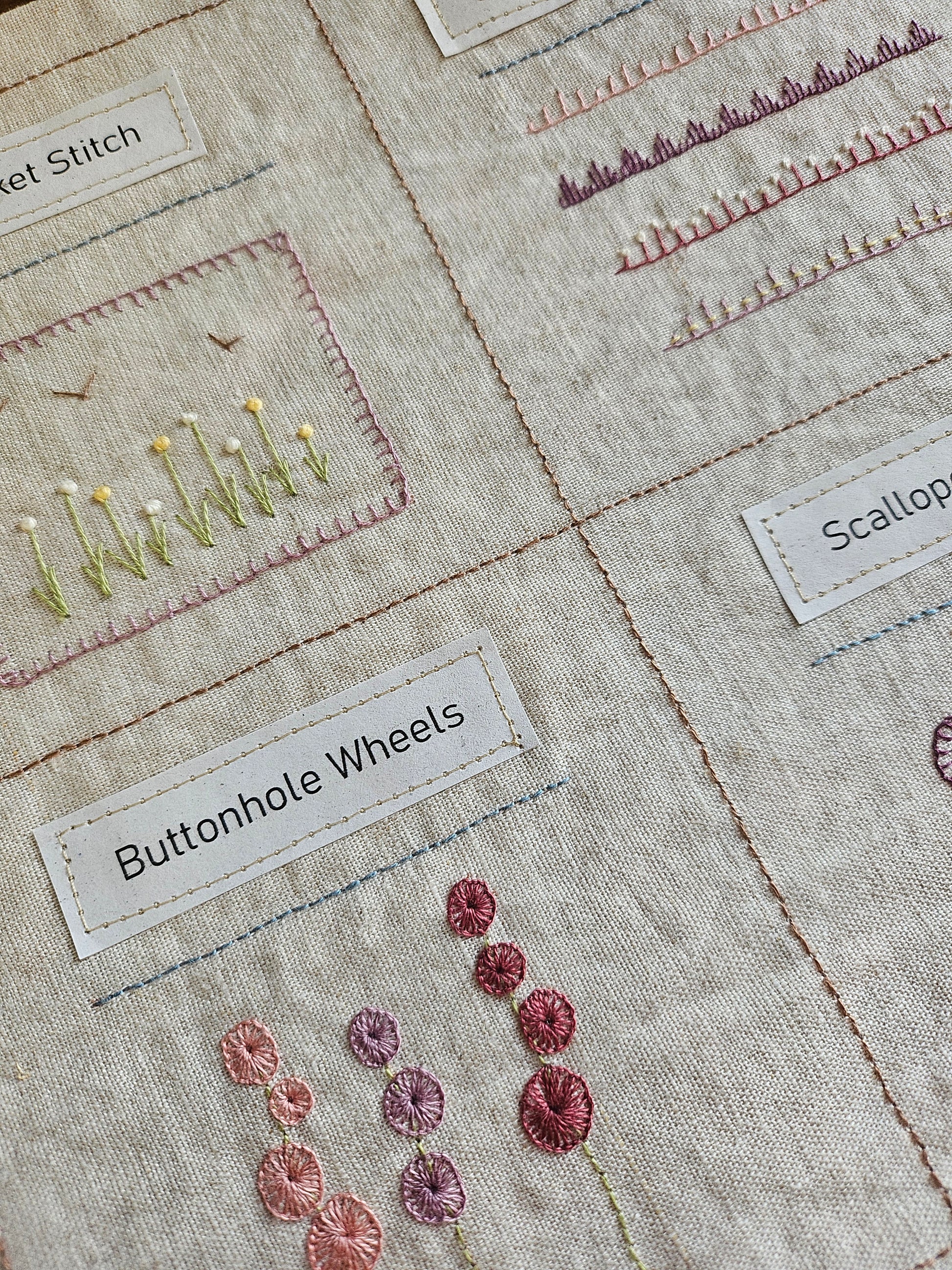 Shop NowYour kit will include all fabric and interfacing to make the Sampler book, and all threads as used by myself in the stitched sampler. It will not include the practice cloth. Please see photo for exact kit inclusions.