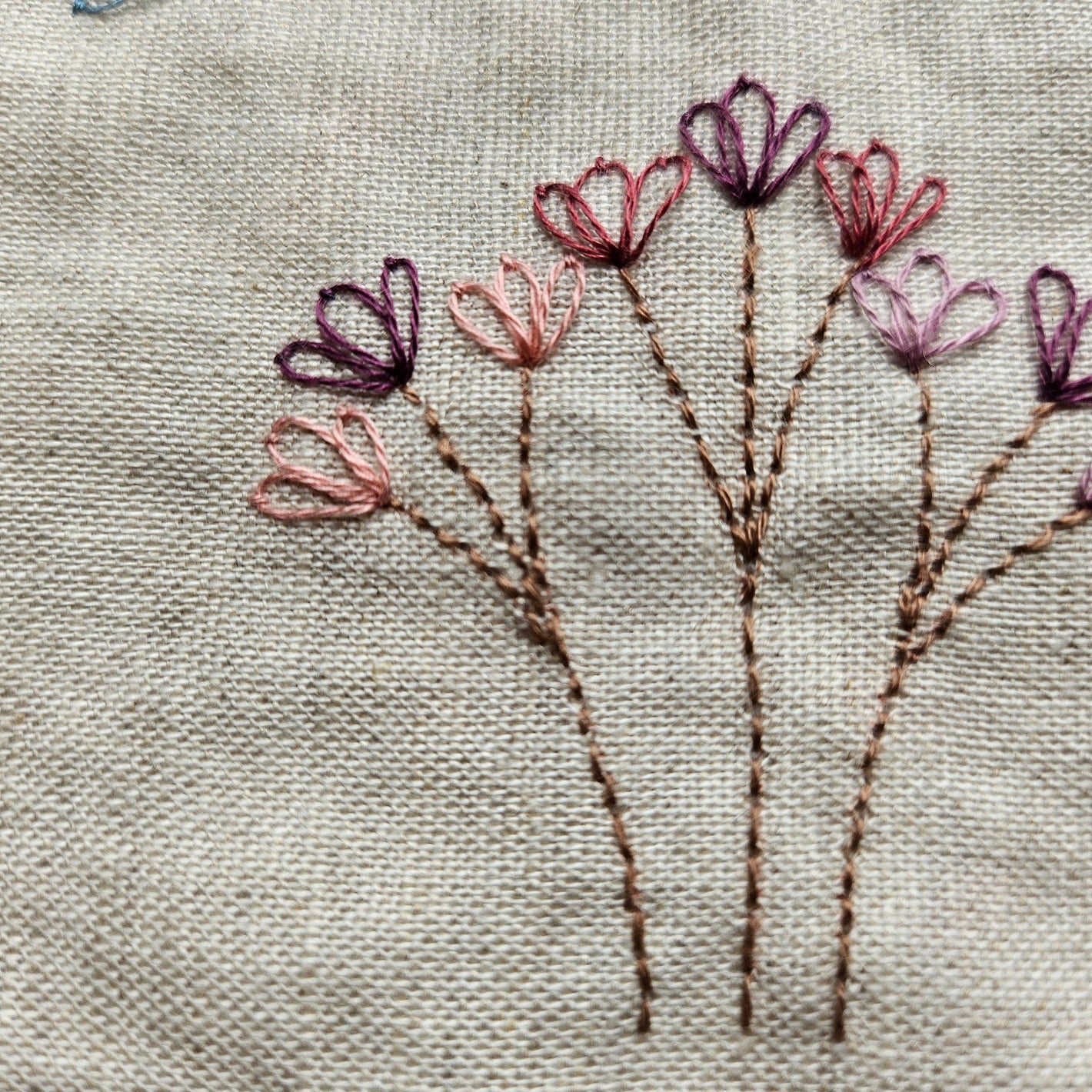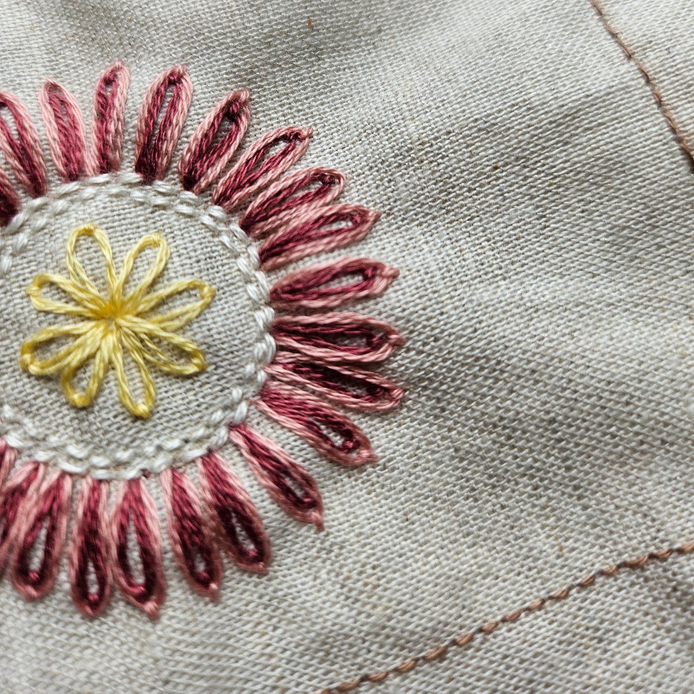 "My Stitch Sampler" is designed for the beginner and the more advanced stitcher...it will take you through the very basic stitches, on to slightly more advanced ones, all designed to give you a selection of 40 stitches to create lovely flower stitchies...many of which I use in my stitchies, along with some new ones. The "sampler" will be an 11 month subscription...each month, for the first 10 months, you will receive full instructions for four new stitches, with labels for the journal stitchies...we will use these four stitchies to create a page in the fabric journal...for the eleventh month you will receive instructions for the cover page and construction of the fabric journal. There will be 10 pages of stitched designs, and a cover page...at the end you will have a beautiful journal of stitchies, all labeled with the stitch that each stitchie is highlighting. If you have friends new to stitching, this would be perfect for them to learn a great selection of new stitches.